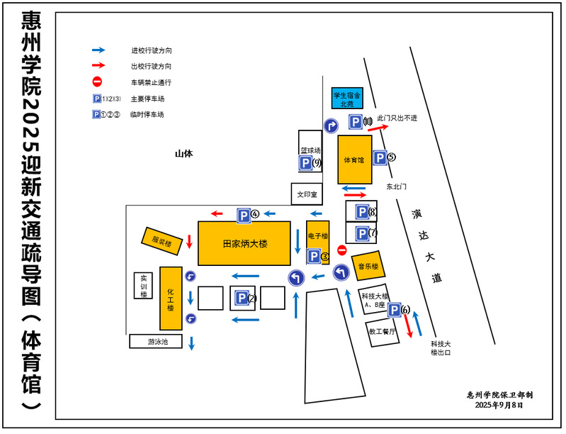 根据学校工作安排,2025年9月13日、14日为新生注册报到日,为全力保障新生入学注册报到期间各项工作有序开展,届时校园实行临时交通管制,现将有关事项通知如下: