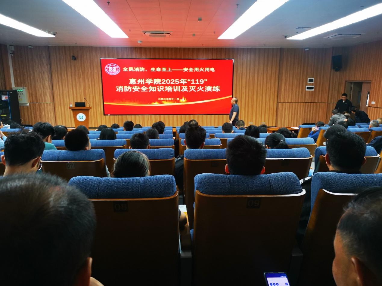本网讯 为全面提升师生员工的消防安全意识和自防自救能力,营造“人人讲安全 个个会应急”的浓厚校园安全氛围。11月13日,我校在旭日科技大楼A座302会议厅举行以“全民消防,生命至上——安全用火用电”为主题的消防宣传月活动,各党政教辅单位、二级学院负责消防安全管理人员、辅导员、实验室主任、实验员,总务后勤部相关人员,惠大资产经营有限公司相关人员,图书馆、“两馆”、现代教育技术中心等负责消防安全工作的人员参加。活动由保卫部副部长主持。